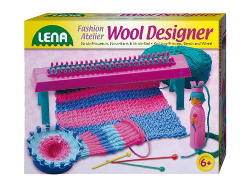 Klassisches Lernset mit Strickbank, Strickrad, Strickliesel, Nadeln und 50g Strickgarn.
